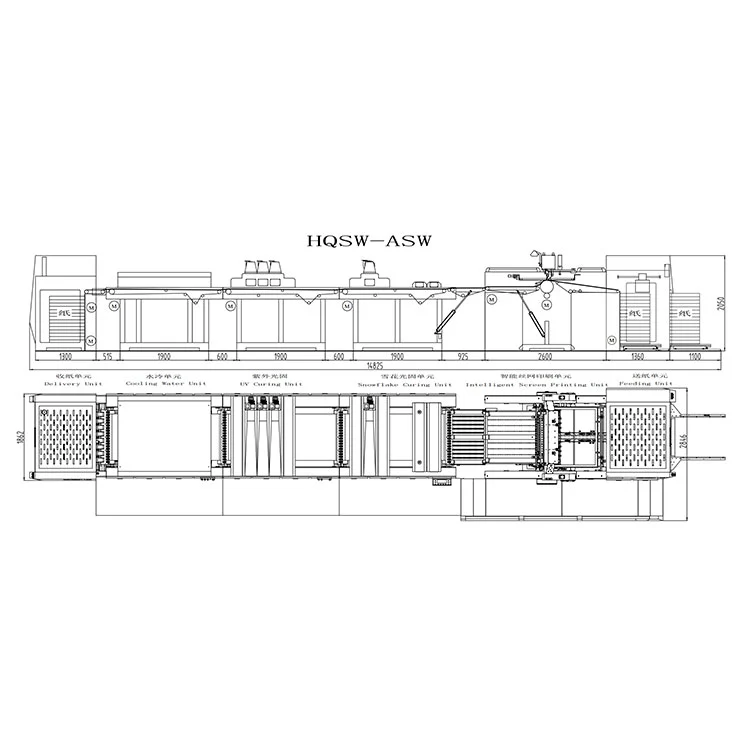 इंटेलिजेंट ऑपरेशन: हे इंटेलिजेंट यूव्ही स्नोफ्लेक क्युरिंग कूलिंग वॉटर स्क्रीन प्रिंटिंग मशीन पूर्णपणे सर्वो इंटेलिजेंट कंट्रोल सिस्टम, एक-बटण स्टार्ट, आणि आपोआप कागद वाहतूक, स्क्रीन प्रिंटिंग, ड्रायिंग, कूलिंग आणि पेपर कलेक्शन यासह क्रियांची मालिका अचूकता, कार्यक्षमता आणि सहजतेने पूर्ण करते.