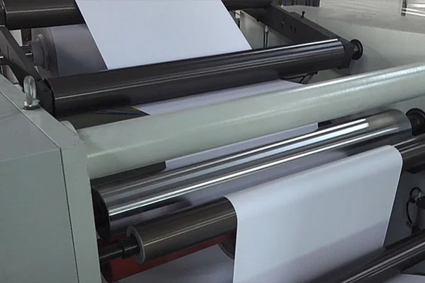 प्रिंटिंग लाइन प्रोडक्शन: रोल-पेपर ऑटोमॅटिक लॅमिनेटिंग मशीन थेट प्रिंट केलेल्या वेबला पोस्ट-प्रिंटिंग लाइन इक्विपमेंट म्हणून कोट करते, एका दमात प्रिंटिंग आणि लॅमिनेटिंग साकार करते.